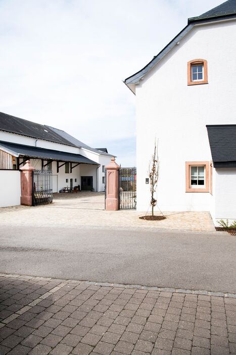 Gegenüberliegend auf der Hofseite, ebenfalls ein Wohngebäude aus der Entstehungszeit um 1760, welches 1922 – 1927 erweitert und zu einer Destillerie umgebaut wurde.